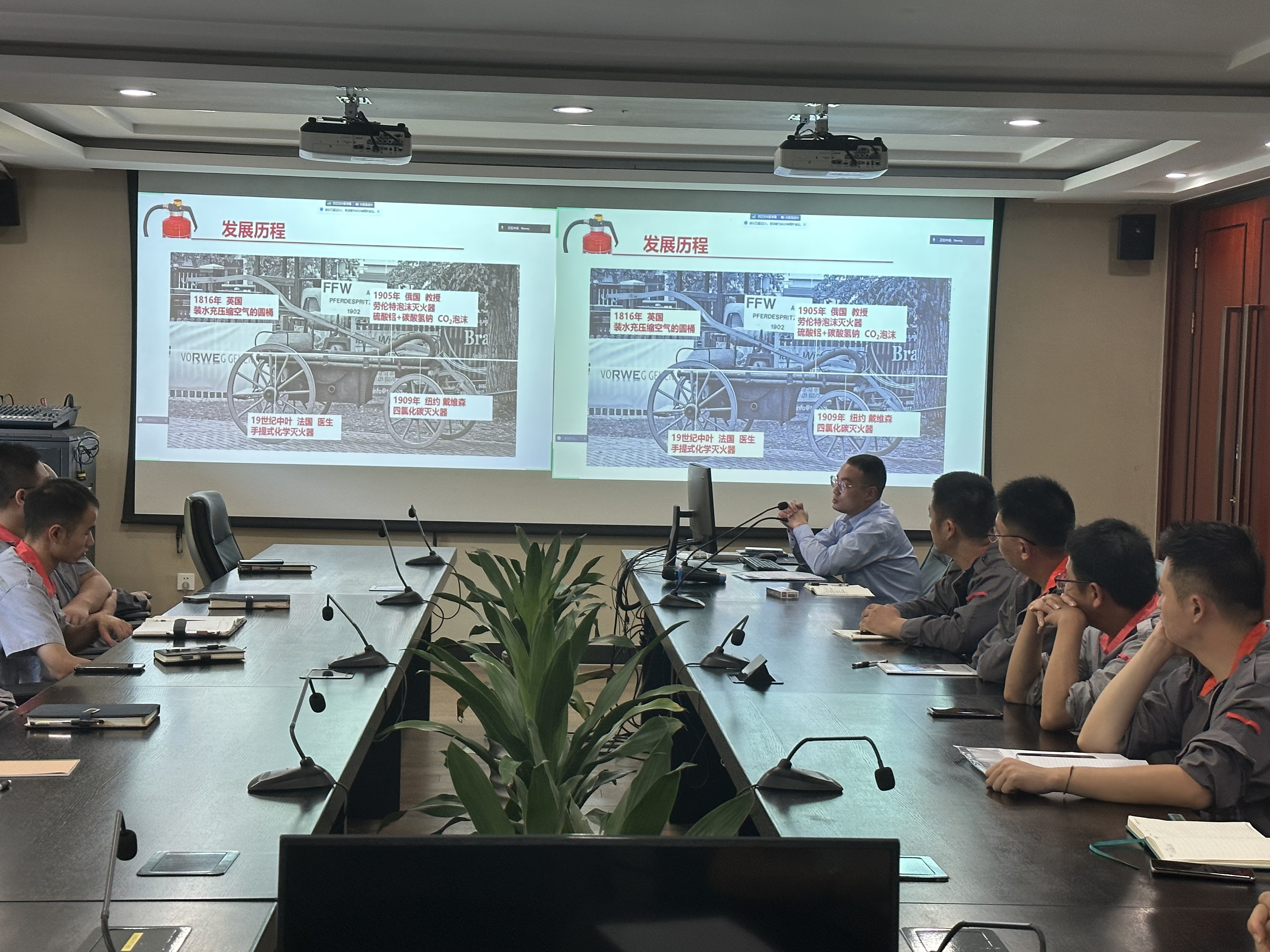 培訓會上,金雯軍采用PPT授課,結(jié)合近年來發(fā)生的重大火災事故案例,分析工廠日常工作中容易引發(fā)火災的消防安全隱患,詳細講解有效防范火災、火場緊急避險疏散逃生技巧、滅火器的使用方法和注意事項等知識,從實際行動中杜絕火災的發(fā)生并提高職工的防火意識。