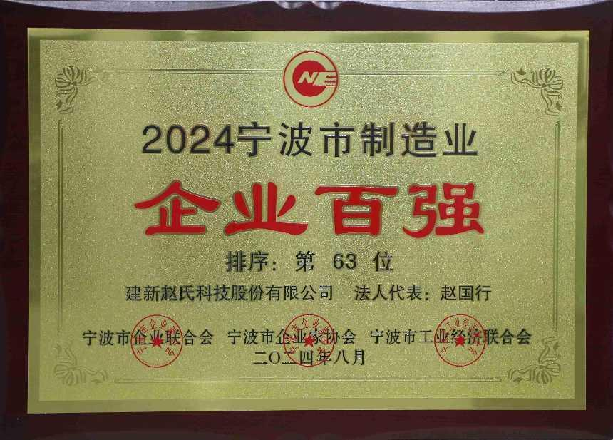 近日,2024寧波企業(yè)百強(qiáng)榜由寧波市企業(yè)聯(lián)合會(huì)、寧波市企業(yè)家協(xié)會(huì)、寧波市工業(yè)經(jīng)濟(jì)聯(lián)合會(huì)聯(lián)合發(fā)布。建新趙氏科技股份有限公司獲評(píng) 2024 寧波市制造業(yè)百強(qiáng)企業(yè)與寧波市競(jìng)爭(zhēng)力百強(qiáng)企業(yè),這是建新連續(xù)第十年榮登榜單。