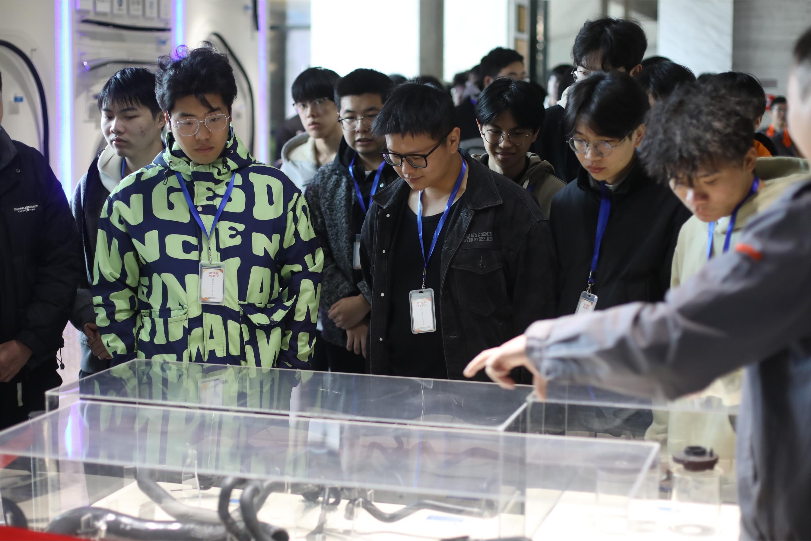 13:10,師生準(zhǔn)時(shí)抵達(dá)建新,在工作人員的帶領(lǐng)下,一同走進(jìn)企業(yè)展廳。講解員向大家介紹了建新的發(fā)展歷程、企業(yè)文化、合作客戶以及在行業(yè)中的地位。緊接著,講解員圍繞車模重點(diǎn)介紹了建新密封條、減震部件等產(chǎn)品在汽車上的應(yīng)用,詳細(xì)講解其功能特性與技術(shù)優(yōu)勢(shì)。同學(xué)們聽得全神貫注,不時(shí)提出問題,現(xiàn)場(chǎng)氛圍熱烈。